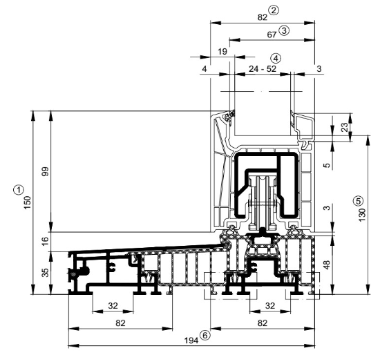 | a 194 mm mélységű tokprofil lehetővé teszi a beépítést az új építésű és felújítás alatt álló épületekben is |